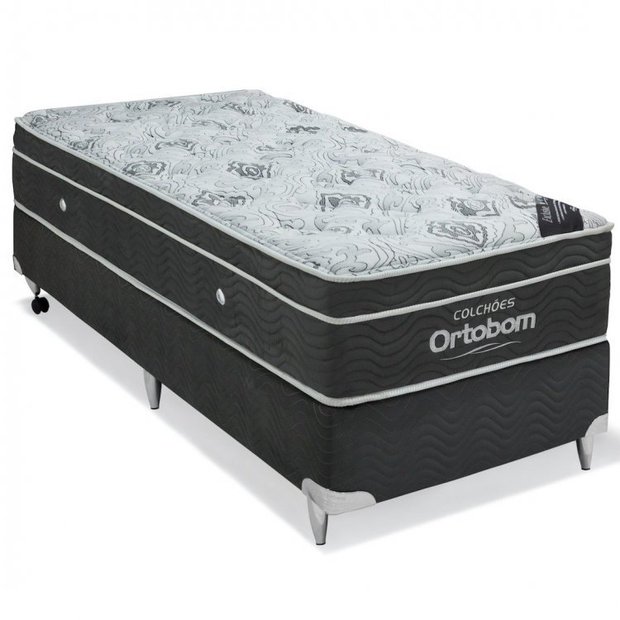 Cama Box Exclusive Solteiro Ortobom Cinza/Branco