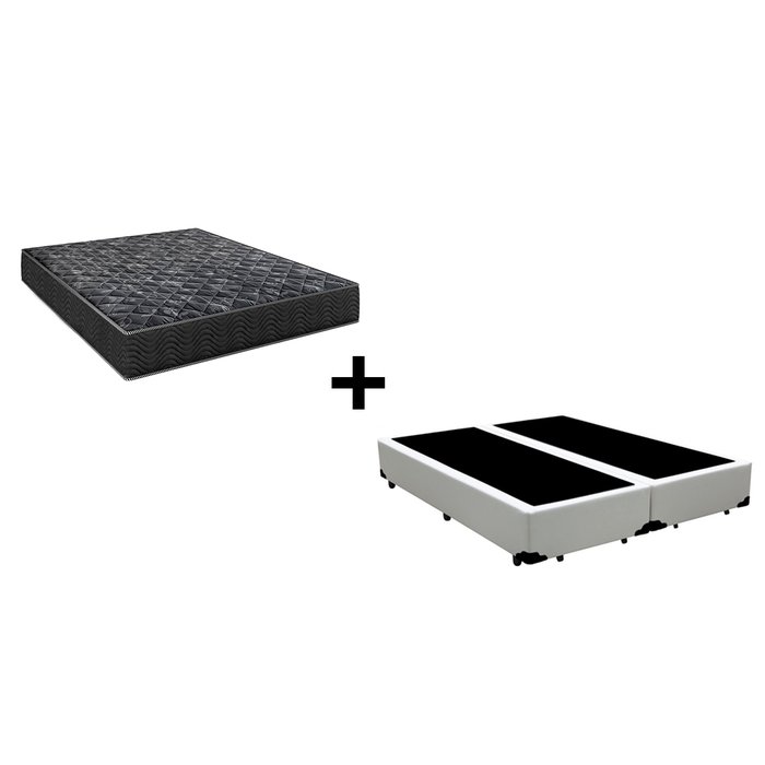 Cama Box King 193 Bipartido Tecido Sintético Branco com Colchão Lisboa Espuma D28 Preto
