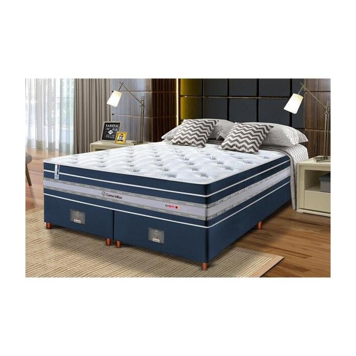 Cama Box King + Colchão de Molas Ensacadas Cama Inbox Select Euro Soft 193x203x71 Azul