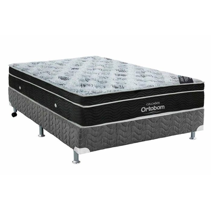 Cama Box King: Colchão Molas Bonnel Ortobom Nanolastic Exclusive + Base CRC Gray(186x198)
