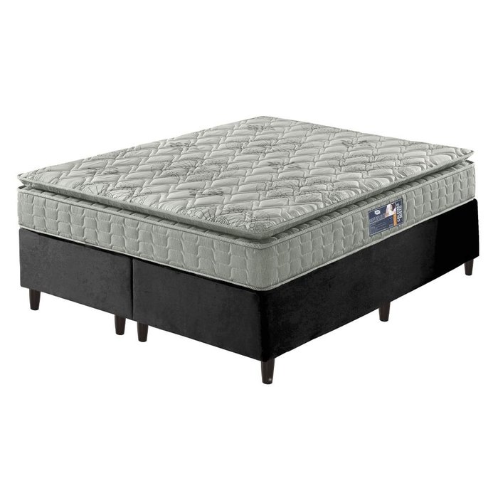 Cama Box King Preto + Colchão Ortopedico Espuma D33 Pillow Top Hanover One 193x203x59cm