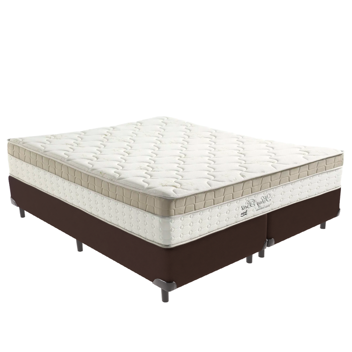 Bem-vindo(a) ao nosso catálogo! Apresentamos a você uma descrição completa sobre esse produto: O Colchão King Best é um colchão feito com espuma D33 de alta qualidade para proporcionar conforto e durabilidade incomparáveis. Com o sistema No Turn, não é necessário virar o colchão para manter sua performance. Sua estrutura suporta até 100kg e possui 18cm de altura, perfeito para uma noite de sono tranquila e revigorante. Colchão: Modelo: King Best; Marca: Anjos; Tamanho: King; Dimensões: 193x203x33cm; (largura x comprimento x altura) Conforto: Intemediário; Proteções: Antiácaro, antialérgico, antifungo, antimofo; Possui: Molas Ensacadas e Molas Superlastic; Peso máximo recomendado: 130KG; Garantia: 03 meses; Base Box: Marca: KazaMix; Cor do Box: Marrom; Material dos pés: Madeira; Estrutura: Madeira; Peso máximo recomendado: até 150kg de cada lado; Altura do Box: 25cm; Altura dos pés: 10cm; Altura total: 35cm; Garantia: 03 meses; Selo Ecologicamente Correto. Invista no seu sono e experimente o conforto e a qualidade! Atenção: Antes de finalizar sua compra, certifique-se de que as dimensões do produto sejam adequadas para serem transportadas pelos elevadores, portas, escadas e corredores de sua residência. Ressaltamos que não nos responsabilizamos pelo transporte do produto por meios específicos, como escadas, guinchos ou içamentos."""