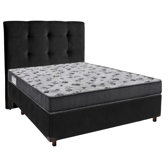 Cama + Box Preto e Colchão Ortobom D33 Casal - Iso100 + Cabeceira Preto