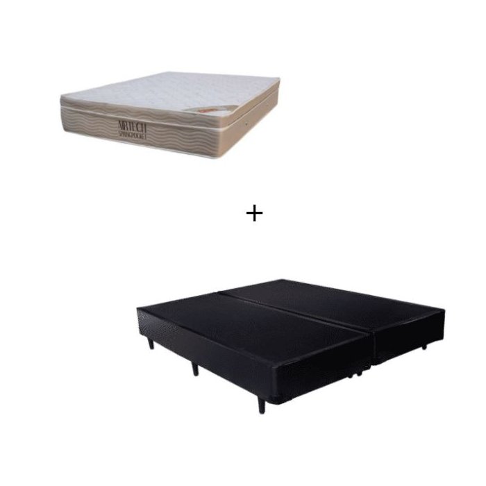 Cama Box Queen 158 Bipartido Sintético Preto com Colchão Ortobom Airtech Spring Pocket D26 Bege 70x1 bege