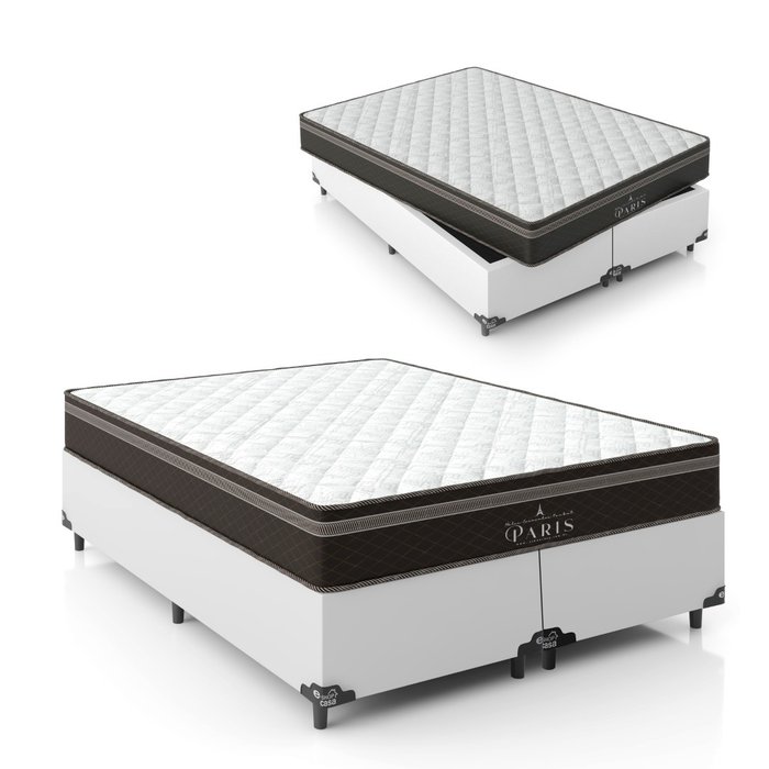 Cama Box Queen Bipartido + Colchão Paris Molas Ensacadas Pocket - e-Shop Casa