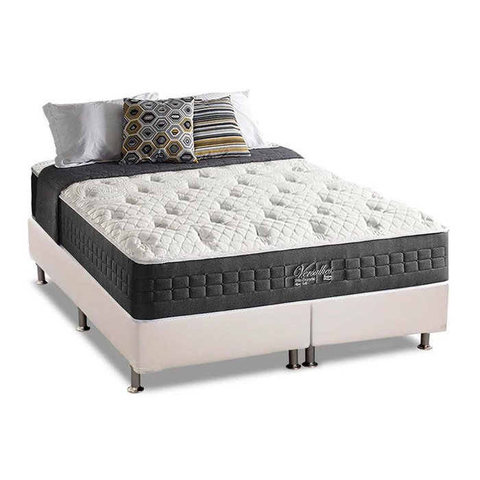 Cama Box Queen: Colchão Molas Anjos MasterPocket Ensacadas Versalhes + Base CRC Courano Branco(158x1