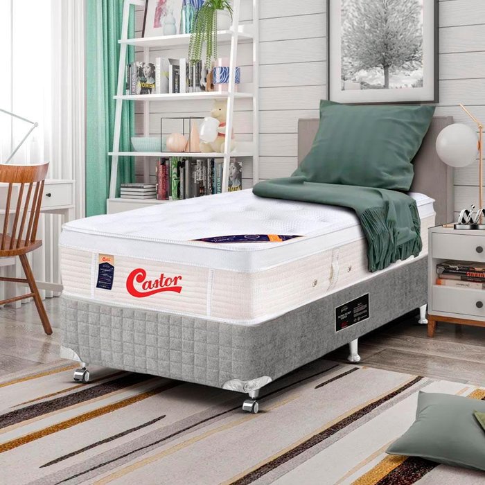 Cama Box Solteiro Castor 78 X 188 X 72 Molas Pocket Gold Star Vitagel Euro One Face