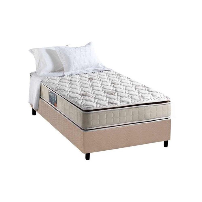 Cama Box Solteiro: Colchão Anatômico Anjos D28/AG65 Magnum + Base CRC Suede Clean(88x188) bege