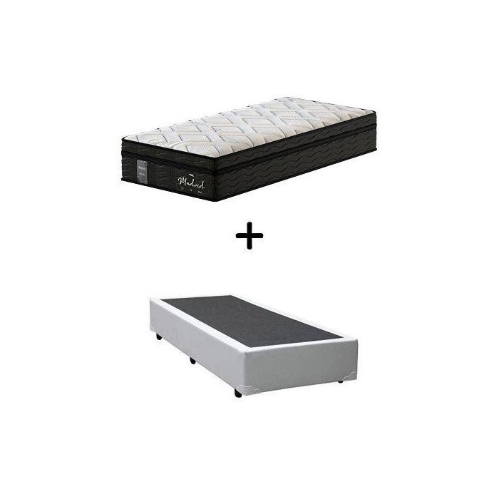 Cama Box Solteiro + Colchão de Molas Ensacadas Probel Madrid Pillow Euro Solteiro