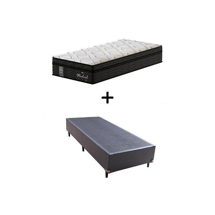 Cama Box Solteiro + Colchão de Molas Ensacadas Probel Madrid Pillow Euro Solteiro