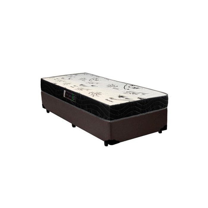 Cama Box Solteiro Colchão Espuma D23 Bambo Branco Ducci + Box Sintético Marrom (52x88x188)