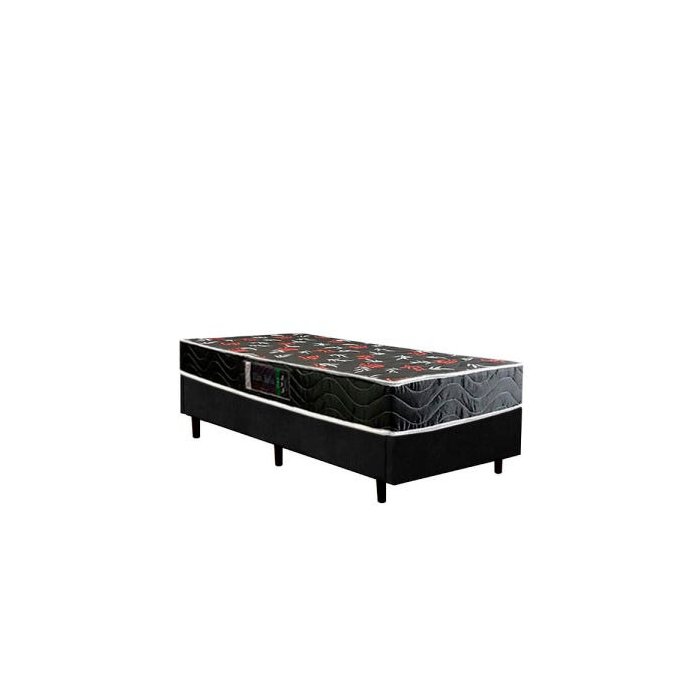 Cama Box Solteiro Colchão Espuma D28 Oriental Preto Ducci + Box Suede Preto (54x88x188)