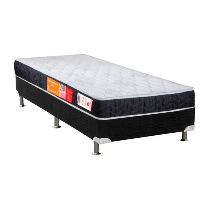 Cama Box Solteiro: Colchão Espuma Orthocrin AG65 Turquesa + Base CRC Suede Black(88x188) Nobre