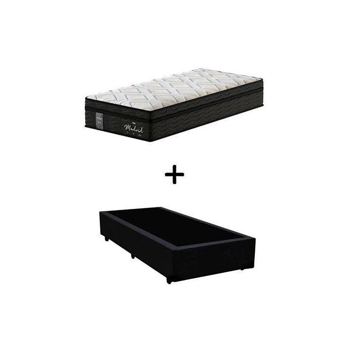 Cama Box Solteiro + Colchão Mola Ensacada Individual Probel Madrid Pillow Euro Solteiro Preto