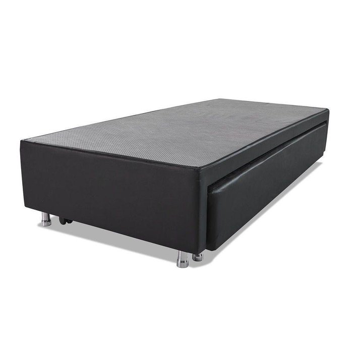 Cama Box Solteiro Com Auxiliar Espuma Sintético Preto 50x88x188