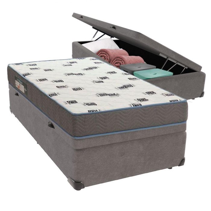 Cama Box Solteiro Com Bau Ortobom D33 Light Cinza
