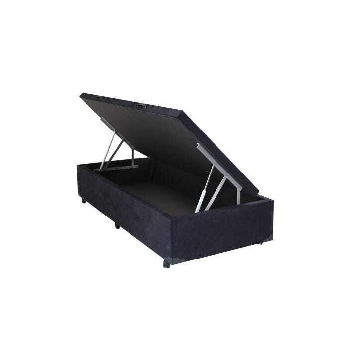 Cama Box Solteiro com Baú Sonnoforte Luxo Suede Preto com Pistão - 88x188