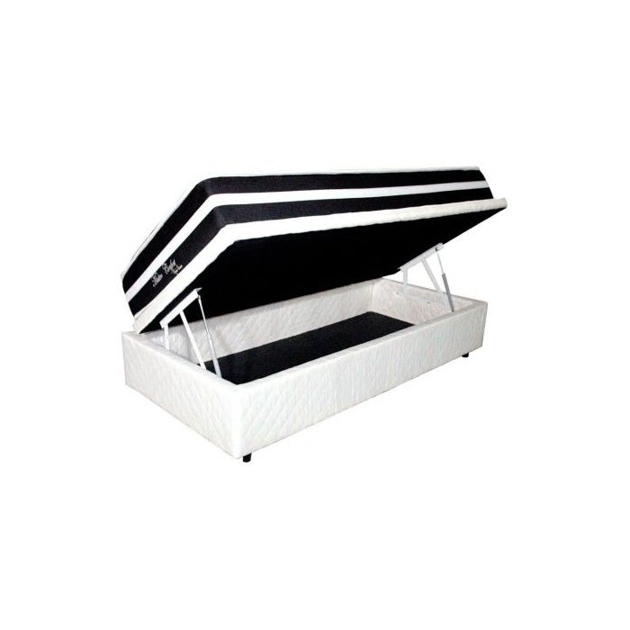 Cama Box Solteiro Master Box Design Baú Branco + Colchão Molas Confort Black 088x188x068 - Sued Cinza