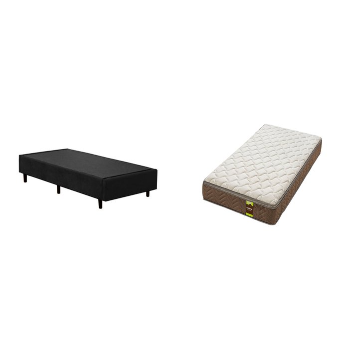 Colchão Abrace Mola Ensacada Solteiro Americanflex 27x88x188Base Box Solteiro Candieiro Sintético Preto 39x88x188 Este produto é fabricado com os melhores materiais, proporcionando uma alta resistência, durabilidade e conforto. Também, pode combinar com a decoração de seu quarto, deixando-o moderno e sofisticado.As cores podem variar de acordo com o seu monitor, iluminação do ambiente e sua percepção visual.Confira as dimensões deste produto e certifique-se que passará normalmente por elevadores, portas, escadas e corredores de sua residência.Antes de finalizar a compra, verifique nossas políticas comerciais para que não haja nenhuma dúvida sobre a entrega, pois não fazemos a montagem e/ou desmontagem do produto, de portas e janelas, bem como, transporte pela escada ou içamento pelo lado de fora do prédio.Detalhes técnicos:Estrutura Interna: estrutura em madeira 100% de reflorestamentoEstrutura Externa: sintéticoTratamento Antiácaro: simTratamento Antialérgico: simSaída de Ventilação: nãoOrtopédico: nãoTecido Antiderrapante: nãoSuporta até (kg): 150Necessita Montagem: nãoGarantia: 6Ambiente: quartoMedida: 39x88x188Possui Pés: simAltura dos Pés (cm): 12Cuidados com o colchão:1- Não coloque seu colchão sobre estrado inteiriço, exceto se utilizado sobre um box.2- Mensalmente, escove e aspire seu colchão, mantendo-o sempre limpo.3- Não utilize ferro de passar roupas, secador de cabelos e outra fonte de calor ou vapor sobre o colchão.4- Para melhor conservação do produto, utilize sempre um protetor de colchão.5- Nunca dobre ou amasse o colchão.6- A cada 3 meses, gire o colchão lateralmente e de baixo para cima (com exceção dos colchões com tecnologia No Turn).Detalhes técnicos:Proteções: antiácaro - antialérgico - antifungo - antimofoAcabamento: bordado em matelassêMatéria-prima: poliéster/bordadoDensidade: ***Peso máximo recomendado: até 120kg (por pessoa)Garantia molejo e estofamento (meses): 12Garantia do tecido (em meses): 3Dimensões (altura x largura x comprimento): 27x88x188 COLCHÃO: ABRACE MOLA ENSACADABASE: NORMAL PRETO