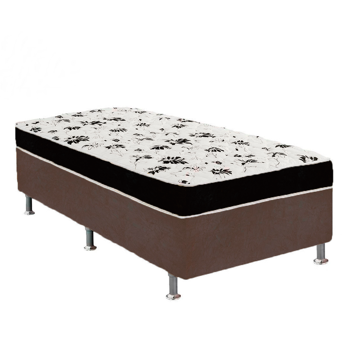 Cama Box Solteiro Suede Marrom + Colchão Solteiro Suede Preto Espuma 88x188x55