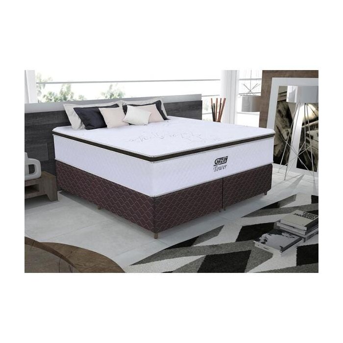 Cama Box Super King CAMA INBOX GAZ Gazin de Molas Ensacadas Tower 193x203x72 Branco Branco