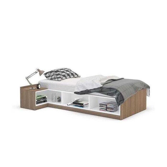 Cama Canadá Mesa de Cabeceira 3 Nichos - Castanho Branco Branco
