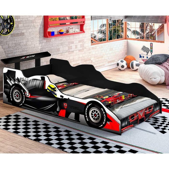 Cama Carro Formula 1 Infantil 100 Em Mdf J E A Moveis Preto Preto