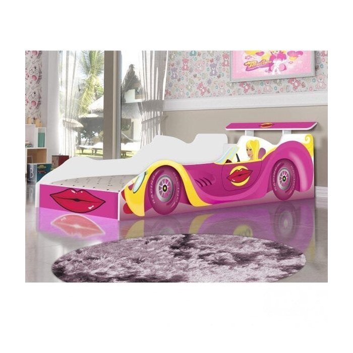 Cama Carro Penélope Charmosa Solteiro J&A Móveis Branco/Rosa