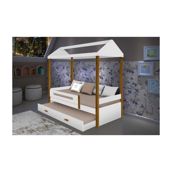 Cama Casa Sara Branco/Mel com Cama Auxiliar com 2 colchões