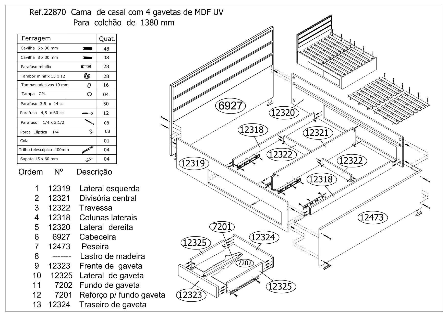 1 Cama e Manual de Montagem.
