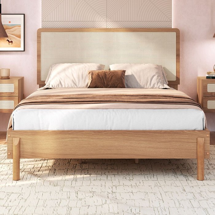 Cama Casal com Cabeceira Fixa 138cm Palhinha Oslo Hanover