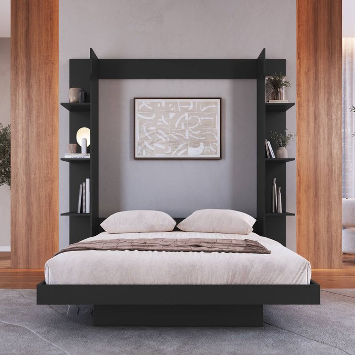 Cama Casal com Estante Articulável Vertical Vancouver para Colchões 138x188 Cm Cv1145 Art In Móveis Grafite