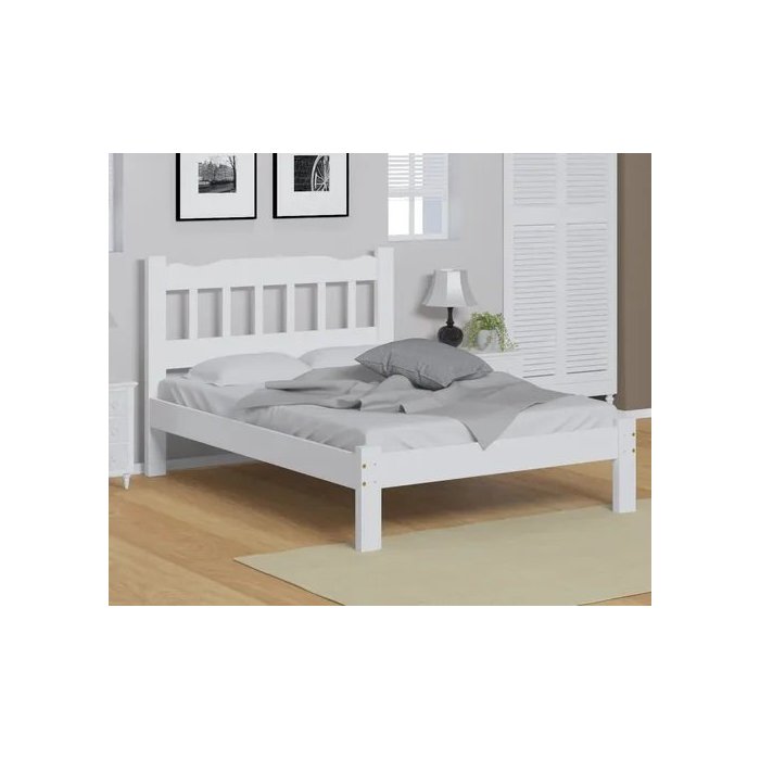 Cama Casal Em Madeira Maciça Reforçada Branco Nemargi