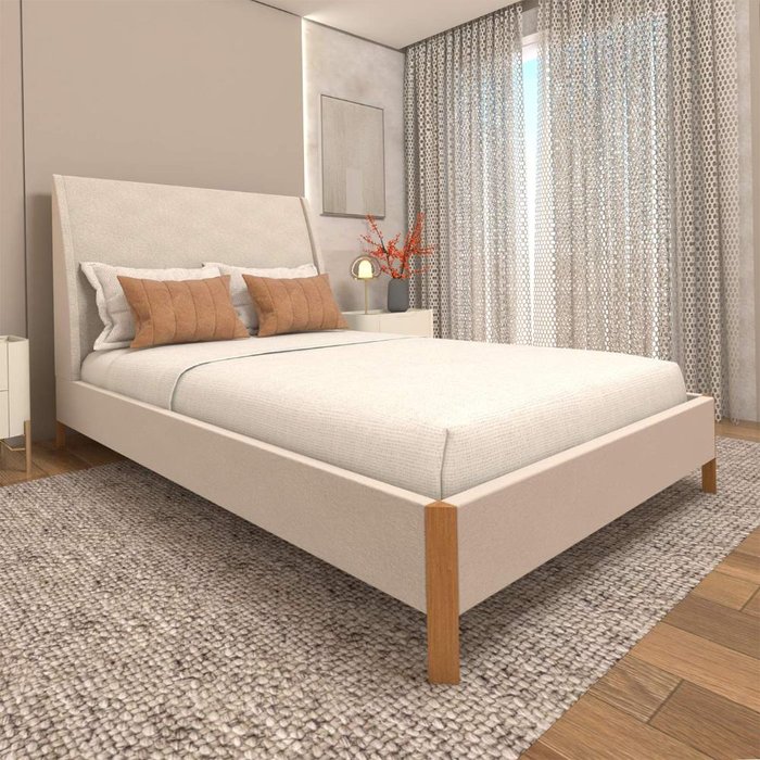 Cama Casal Estofada com Cabeceira 100% Mdf Cor: Veludo Creme Veludo Creme, Linho Aluminio, Linho Lincoln Níquel, Linho Lincoln Amêndoa
