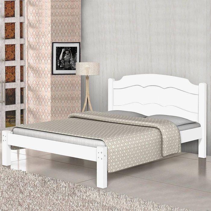 Cama Casal Lais 100% Mdf e Estrado 100% Madeira Basoto - Branco Branco