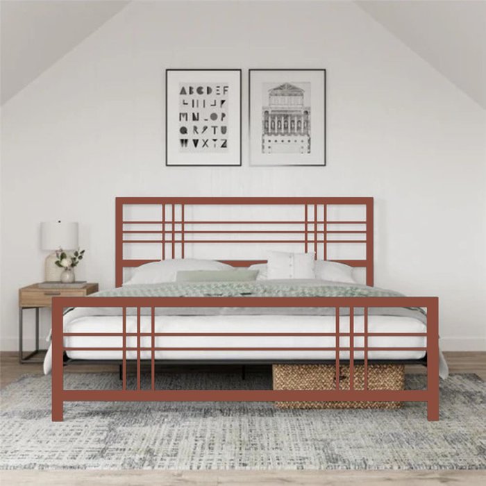 Cama Casal Robusta Aço Ferro Tamanho Padrão 138cmx188cm Cor Rosê Estilo Industrial Mobbili Ca-04