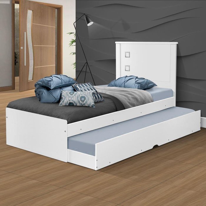 Dimensões da Cama: Largura 0,96m; Altura 1,07m; Profundidade 1,95m. Dimensões Cama Auxiliar: Largura 0,92m; Altura 0,26m; Profundidade 1,89m. Itens Inclusos: 1 Cama com Auxiliar (Não acompanha colchão). Colchão Indicado: 0,88 x 1,88. Material Principal: MDF/MDP Pensado no bem estar do seu filho(a) a Tebarrot Móveis desenvolveu a Cama de Solteiro Barcelona com auxiliar, que agrega conforto e beleza. Desenvolvido com materiais de qualidade, essa cama pode ser utilizada para colchões com a medida de 0,88 m tanto na parte de cima, como na de baixo, facilitando o seu dia a dia. As noites de sono de seus filhos além de serem mais confortáveis, serão muito mais divertidas com a cama com auxiliar Tebarrot Barcelona. Além é claro de ser um produto flex.Complexidade de Montagem: Média, pode ser montado por mais de uma pessoa e/ou necessite de maior conhecimento para montagem. Recomendações de Uso, Manutenção e Limpeza: Limpar com flanela ou pano macio seco, não utilizar produtos abrasivos, desengordurantes, álcool ou solvente. Não expor o produto diretamente à luz solar e à umidade. Garantia: 3 meses. Tamanho da Cama: Bicama | Produto: 7891903873074 | Cor: Branco | Classificação da Cama: Solteiro | Peso Montado: 50 | Profundidade Montado: 195 | Largura Montado: 96 | Altura Montado: 107