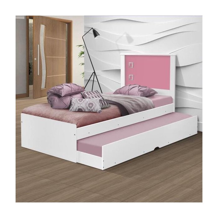 Cama Com Auxiliar Solteiro Branca E Rosa