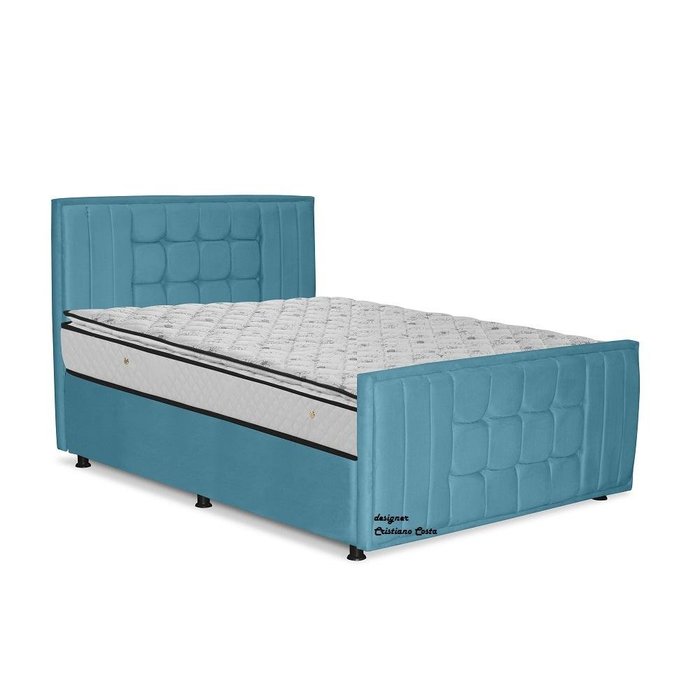 Cama com Cabeceira Casal Estofada Uvaia 140cm Suede: Azul Turquesa