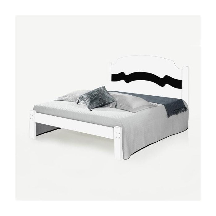 Cama de casal com design alto relevo Iris Branco e preto