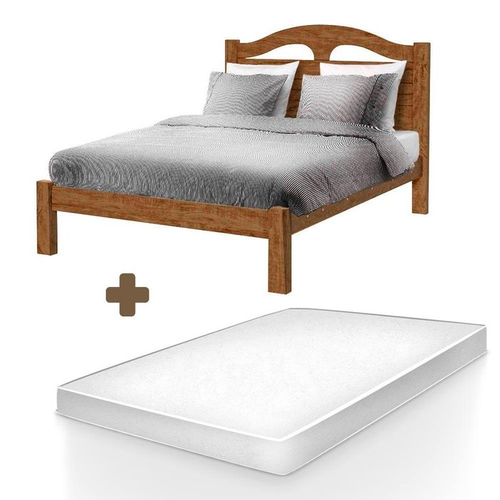 Cama De Casal De Madeira Melissa Fénix Castanho Com Colchão Casal Hellen Pro Confort