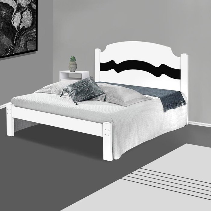 Cama De Casal Em MDF Branco Preto Cambel Branco