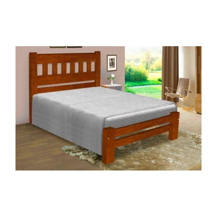 Cama de Casal Madri de Madeira Maciça Angelim Pedra/Tauari