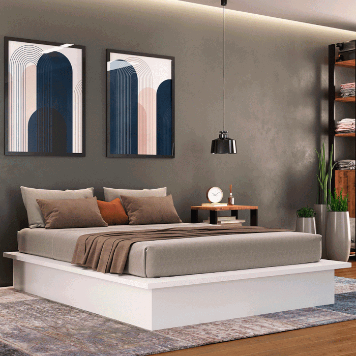 | Observação | Objetos decorativos que aparecem nas imagens, não acompanham o produto. Cama indicada para colchões de Casal ou Queen |
