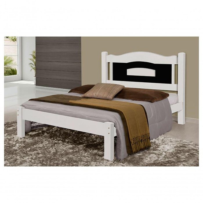 Cama de Casal Paris de Madeira Maciça Tauari Branco Preto