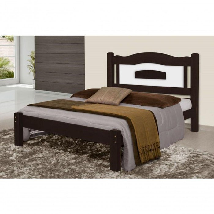 Cama De Casal Paris De Madeira Maciça Tauari - Cor Tabaco/branco