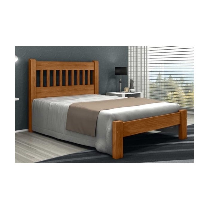 Cama de Casal Pérola de Madeira Maciça Angelim Pedra/Tauari