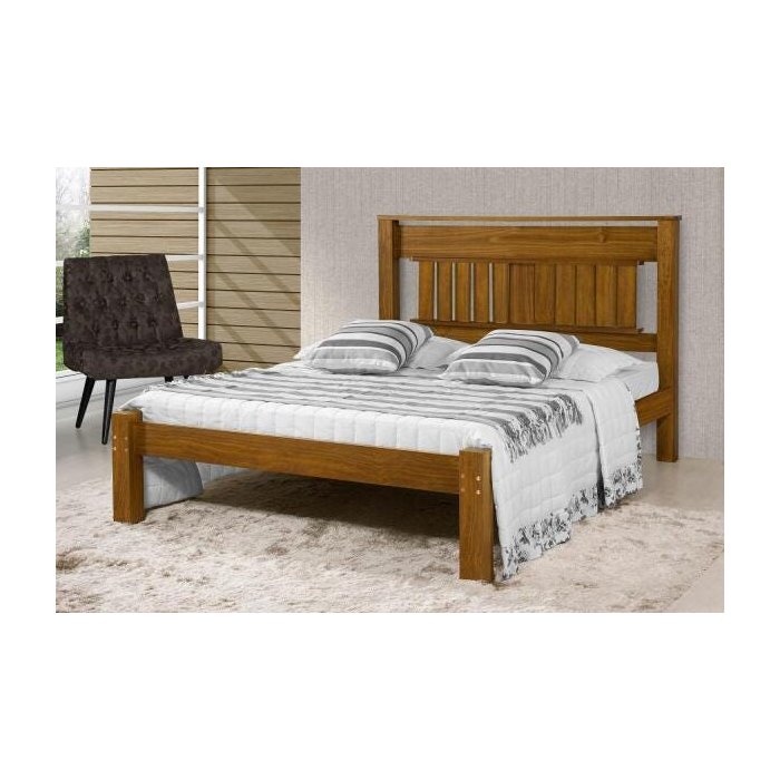 Cama de Casal Sabrina em Madeira Maciça Imbuia - Atraente Móveis