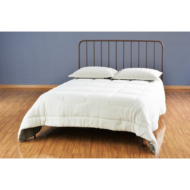 Cama fabricada com estrado 100% em ferro para garantir toda a resistência que o ferro pode proporcionar. Produzidos com vãos de no máximo 7 cm de uma vara de ferro e outra, sendo uma distância ideal para não deformar o colchão com o tempo.