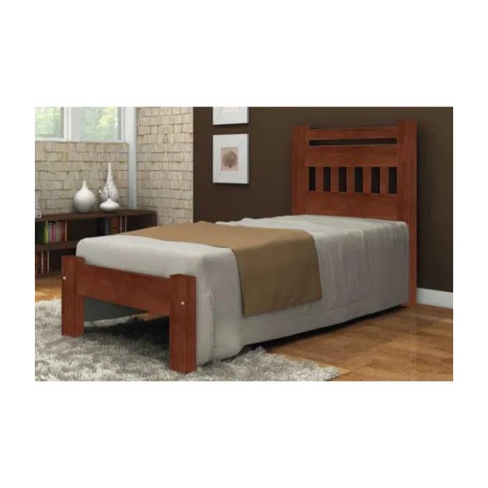 Cama de Solteiro Antares de Madeira Maciça Angelim Pedra/Tauari - Castanho
